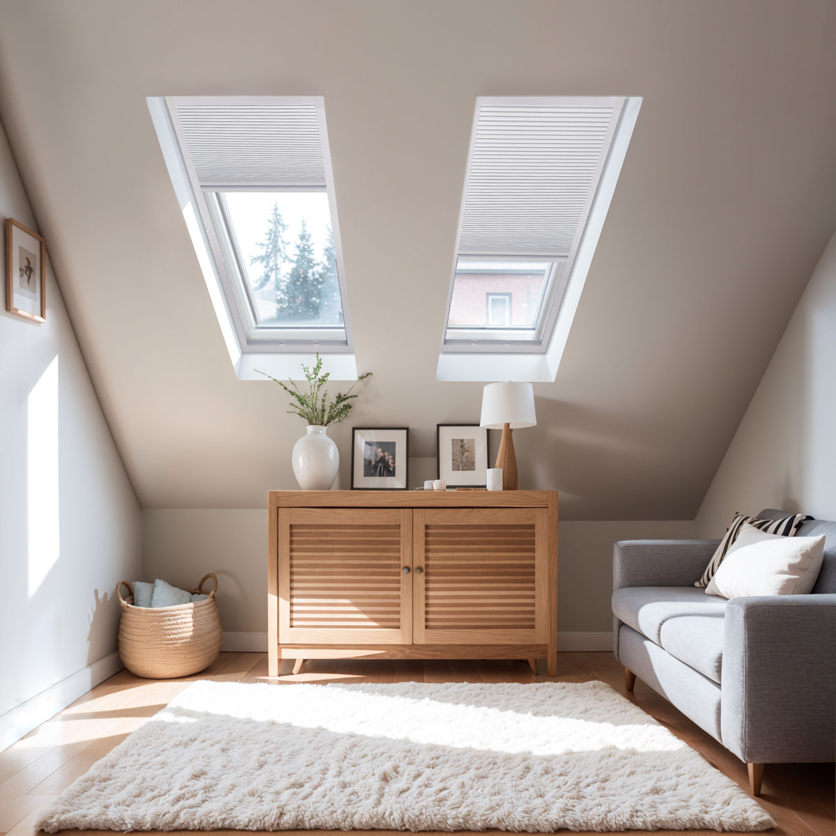 Precision-fit skylight blinds for VELUX®, FAKRO® and Keylite® windows—choose blackout or thermal to control light, glare and heat in loft rooms and attic conversions.